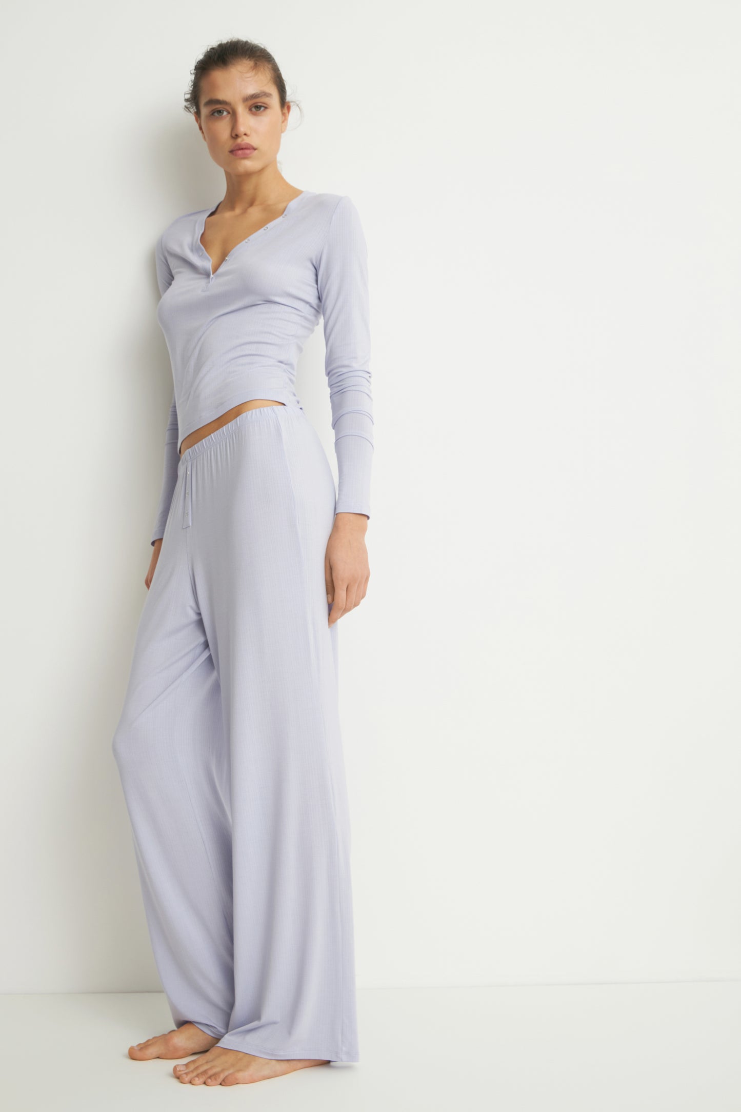 Slim fit T-shirt in a lightweight modal blend jersey with a deep V-shaped neck and small snap buttons.