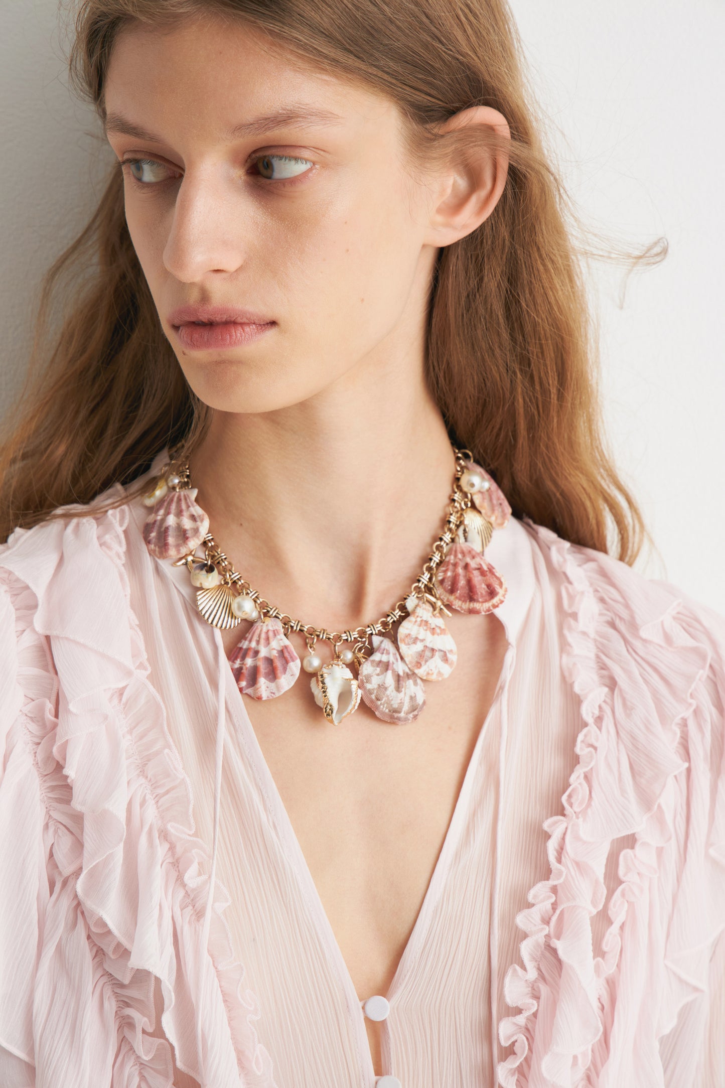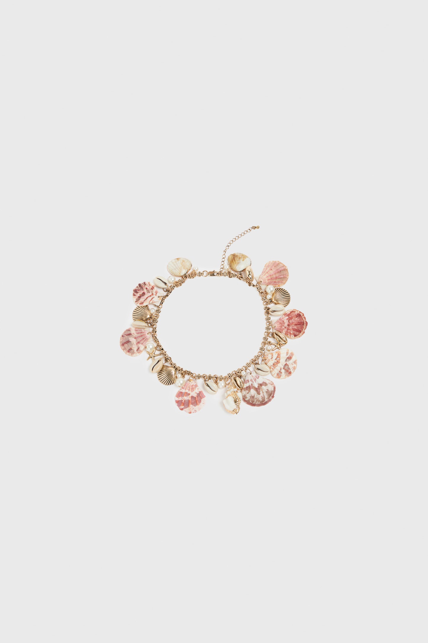 Chain necklace with beads and mix of seashell-look pendants in metal and natural shell. Adjustable length with a lobster clasp fastening. ONE SIZE: 38 / 47 cm
