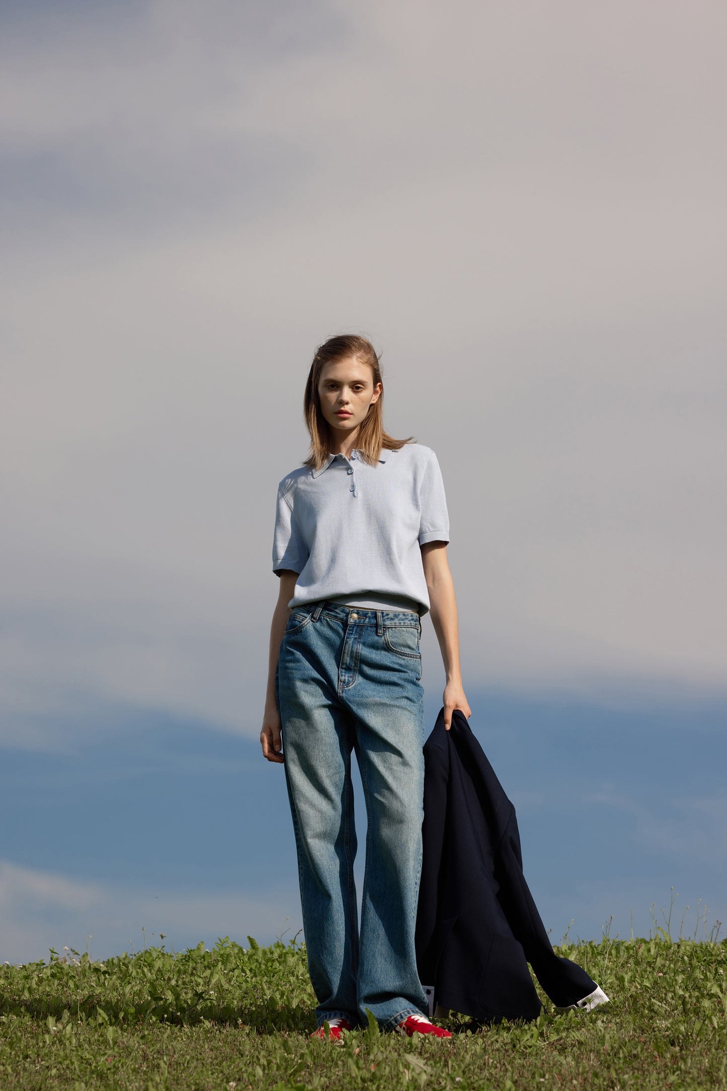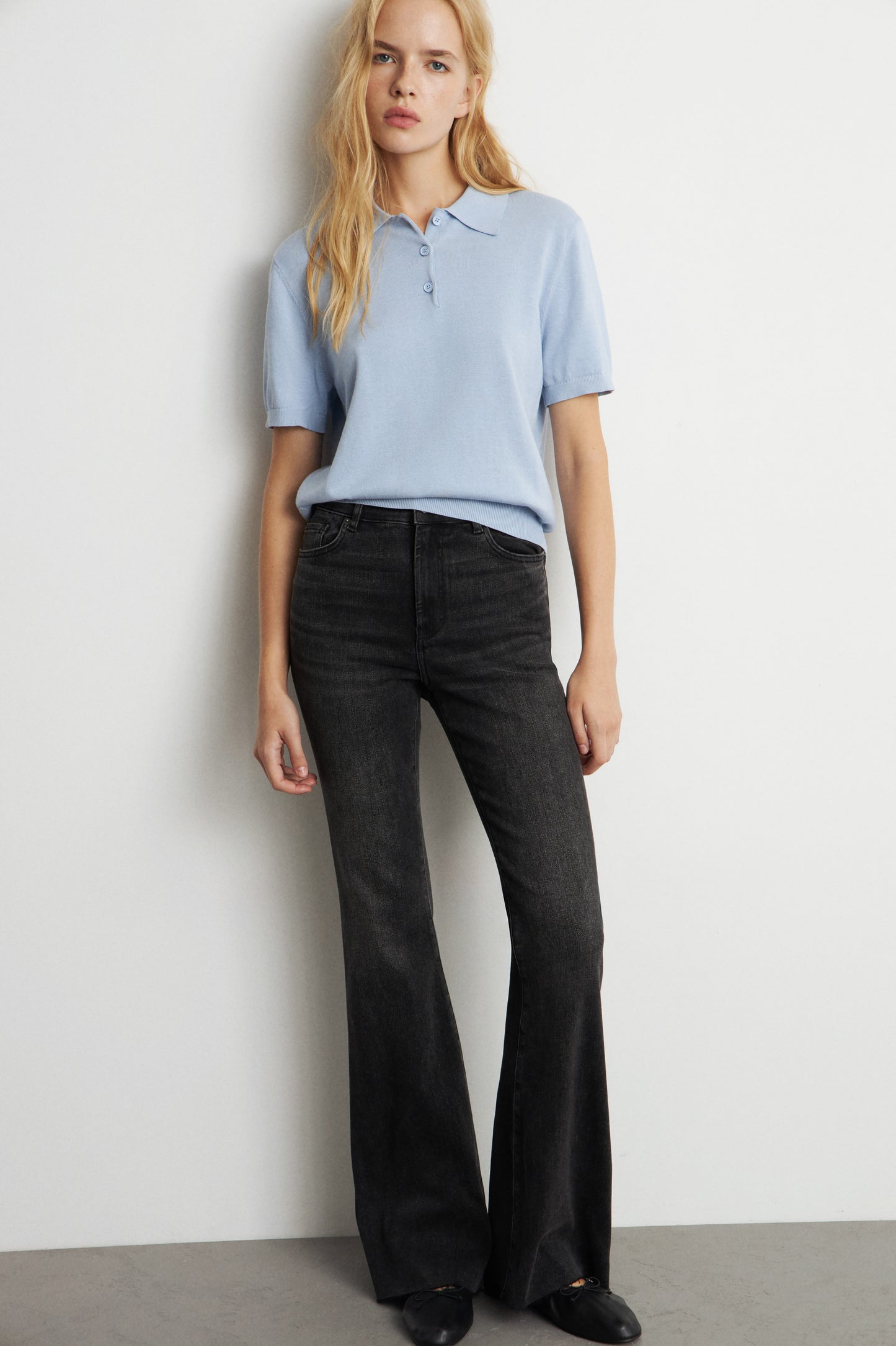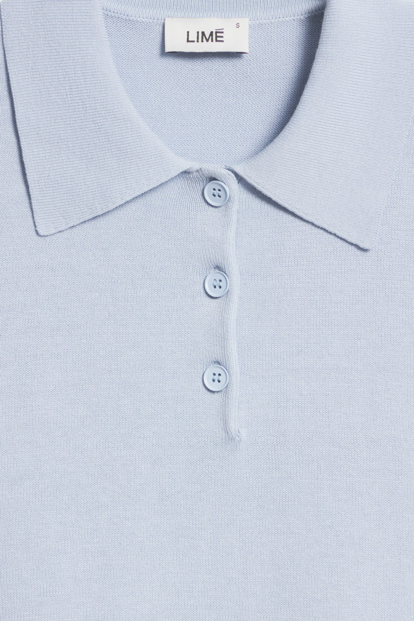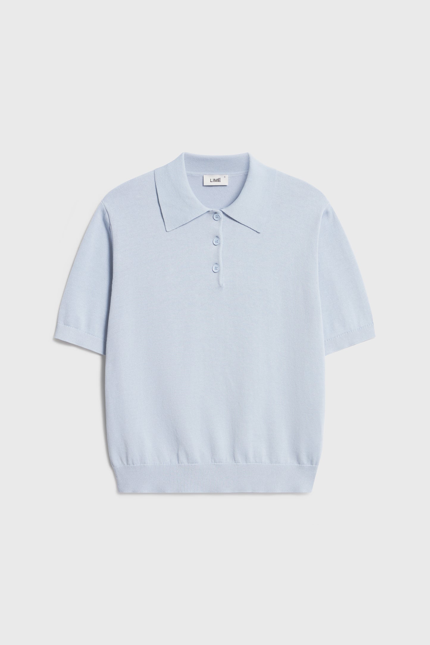 Polo jumper in a fine-knit cotton with a ribbed collar, button placket and short sleeves.