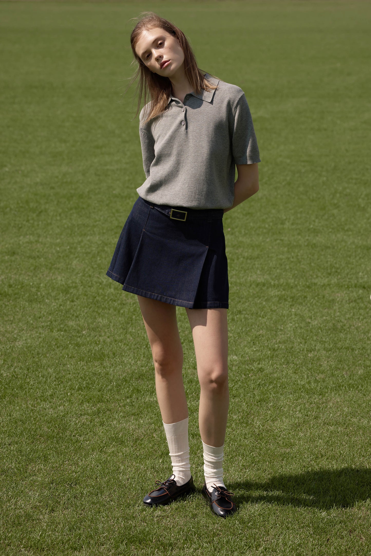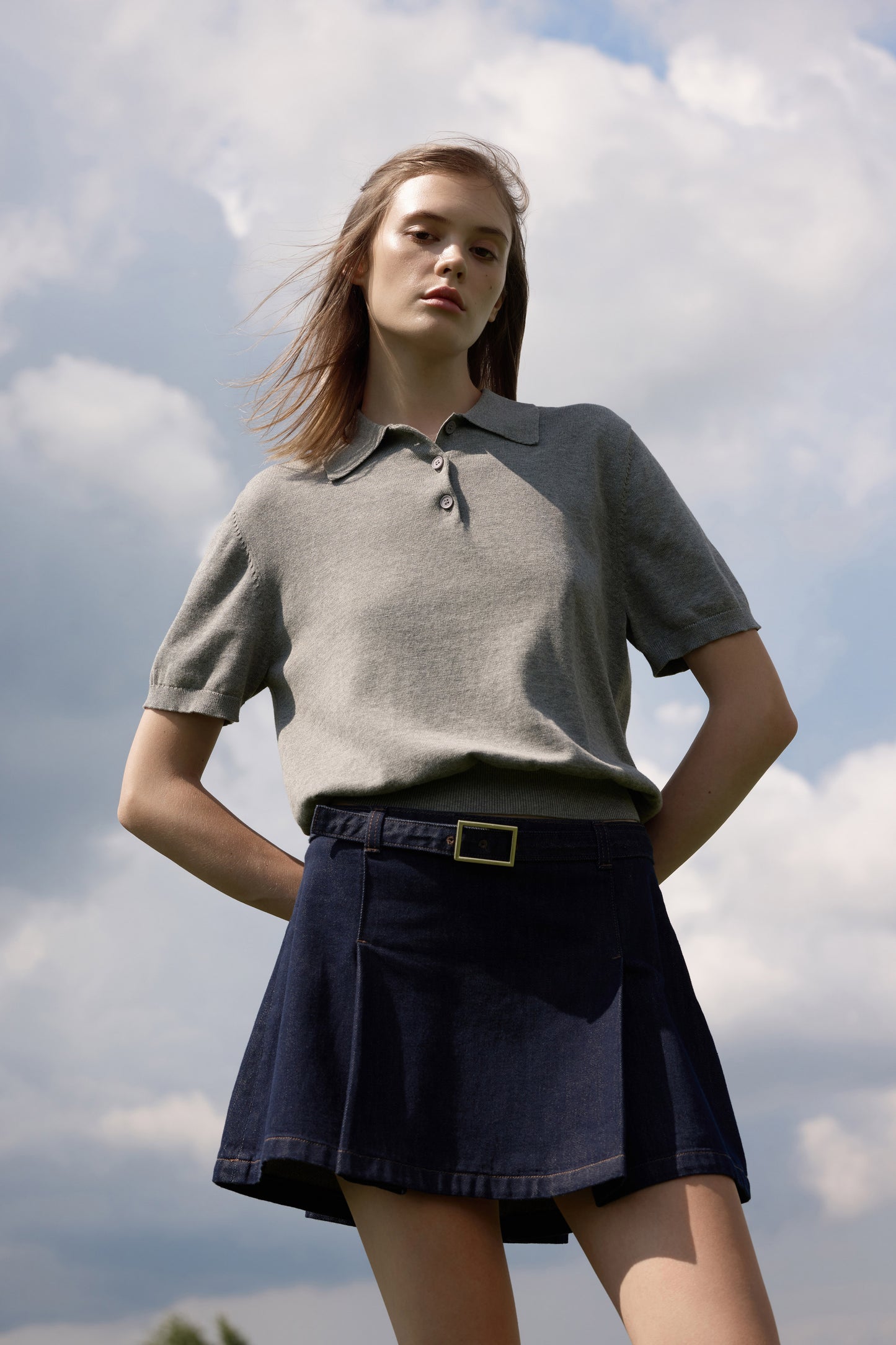 Polo jumper in a fine-knit cotton with a ribbed collar, button placket and short sleeves.