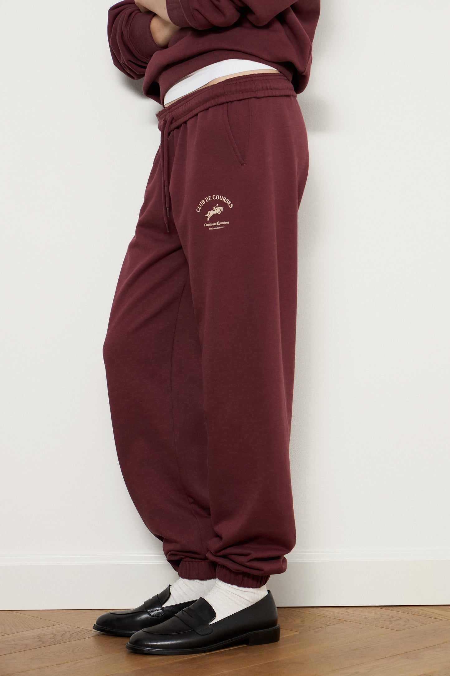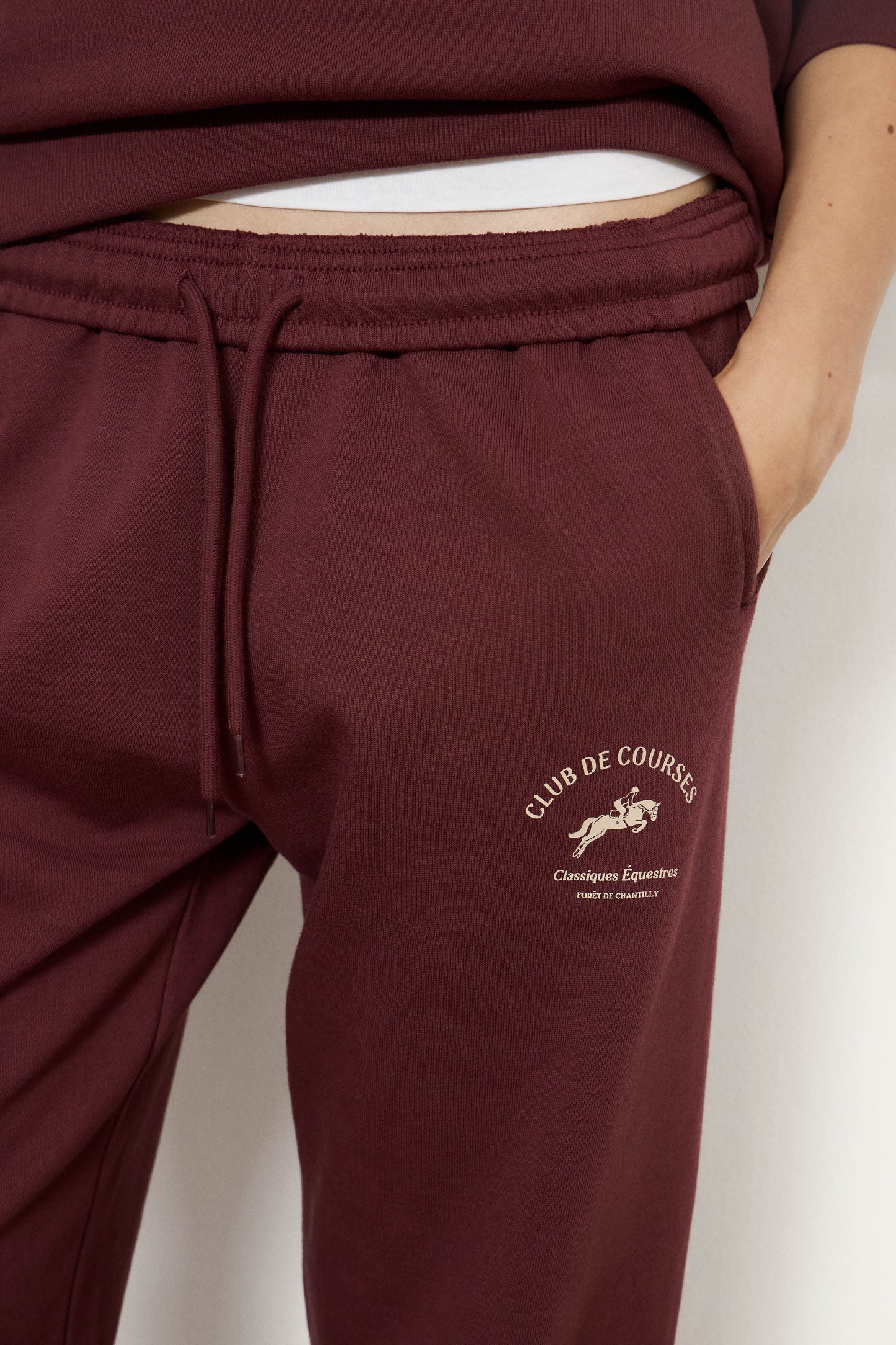 Joggers in cotton sweatshirt fabric with a soft brushed inside. Elasticated, drawstring waist, side pockets and covered elastication at the hems. An printed motif.