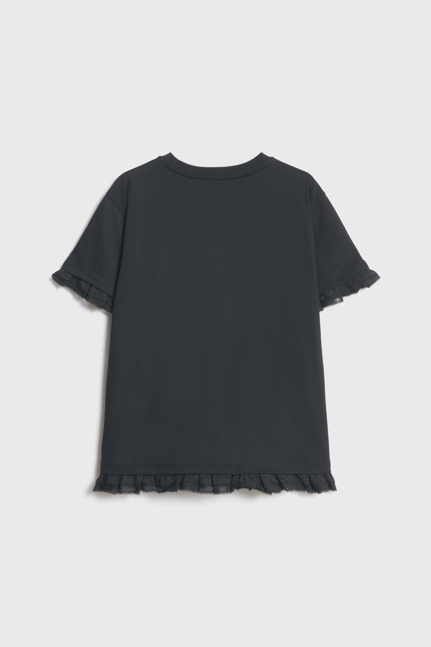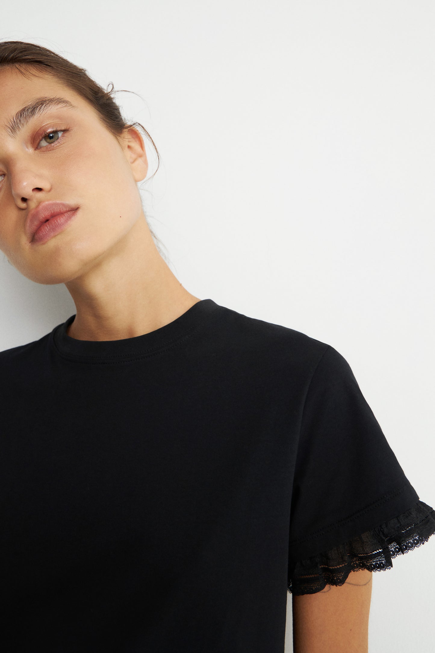 T-shirt in soft cotton jersey with a round neck and short sleeves. Featuring lace-trimmed edges.
