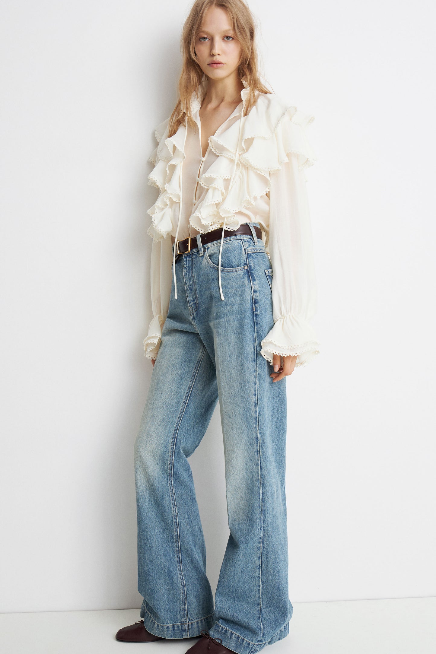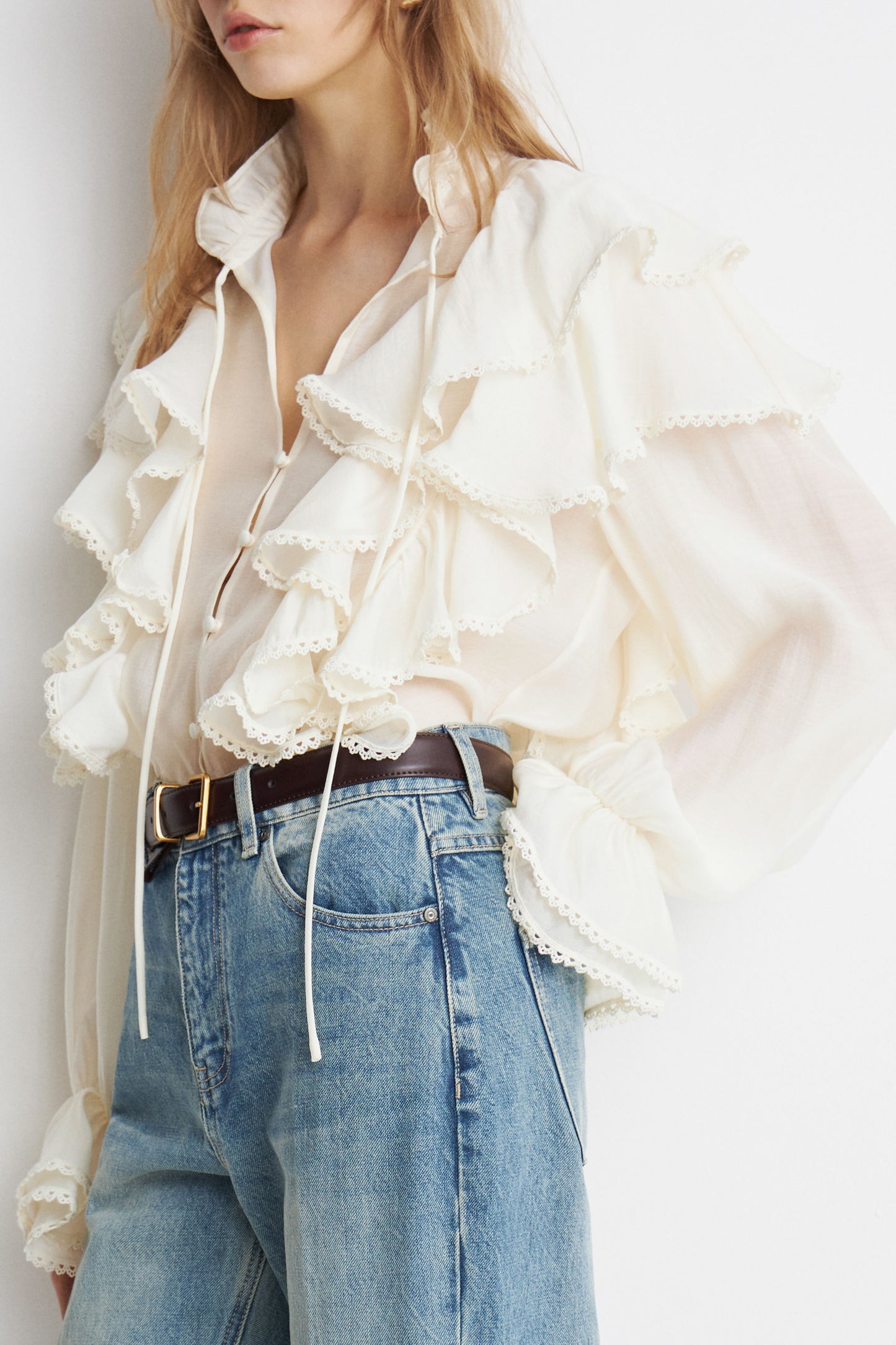 RUFFLE-TRIMMED LYOCELL BLOUSE