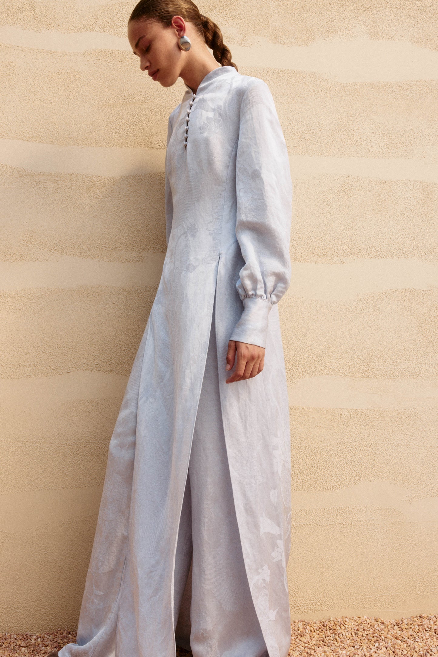 JACQUARD-WEAVE VISCOSE-LINEN TROUSERS