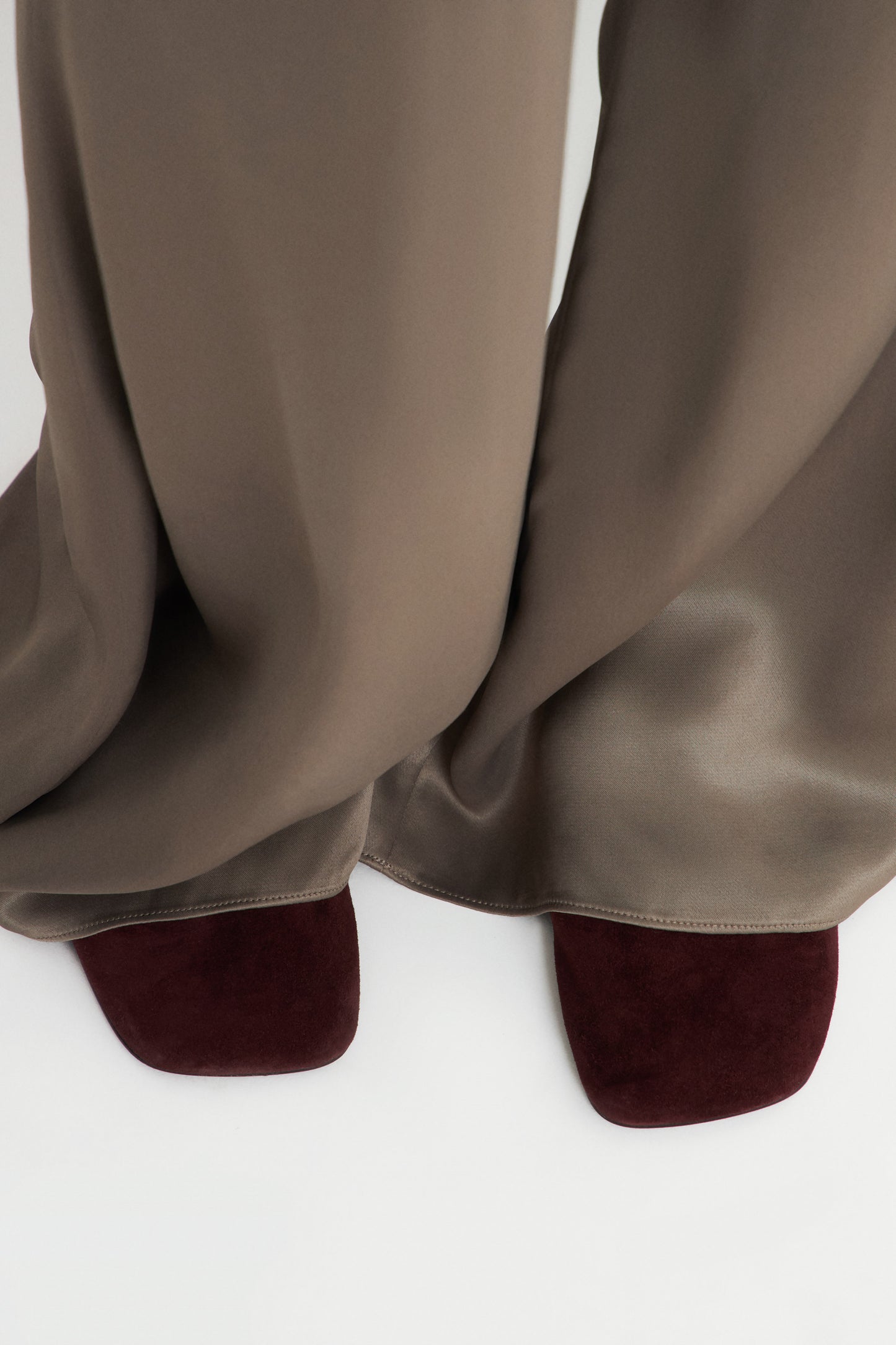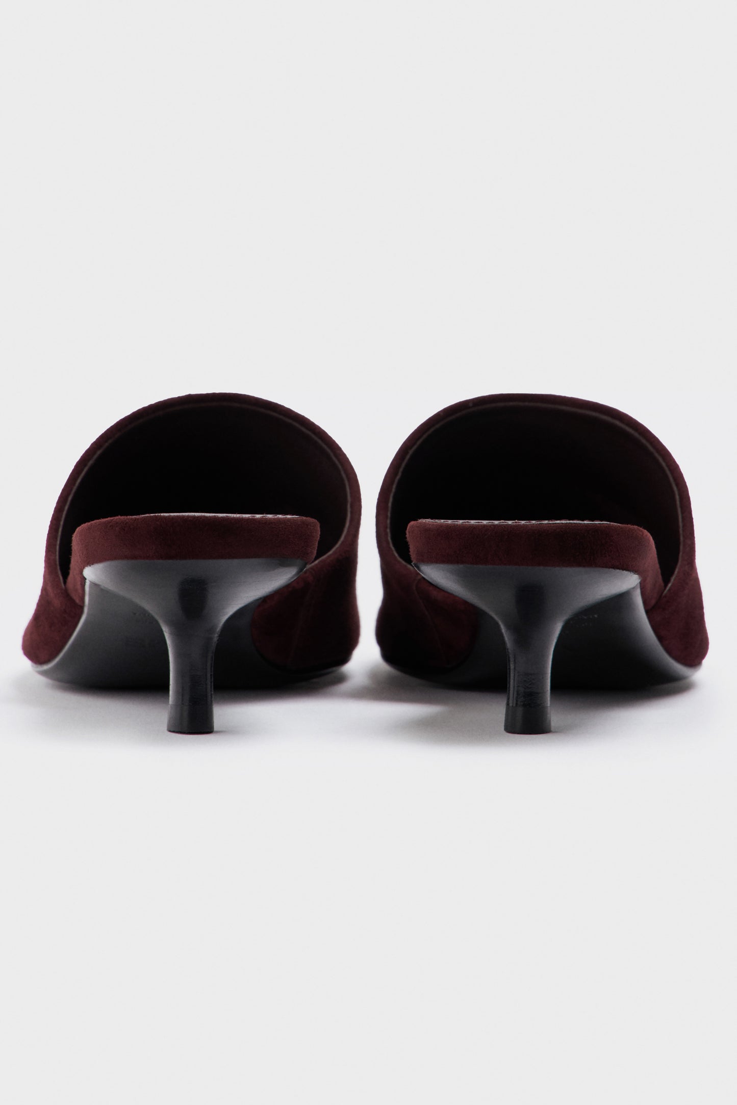 Clog-style heeled shoes in a sheep suede leather. Square toe. Leather insoles. Your purchases are delivered with a fabric bag.