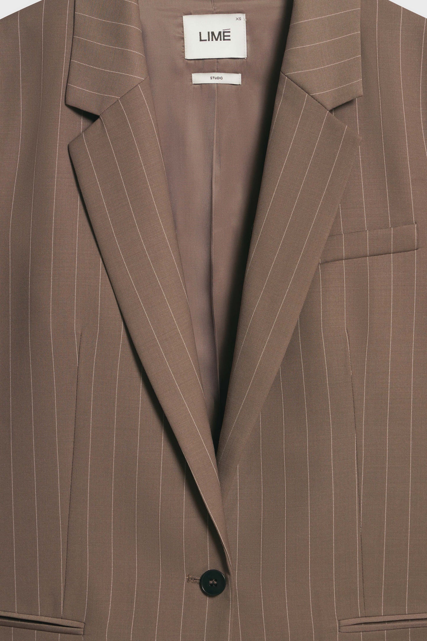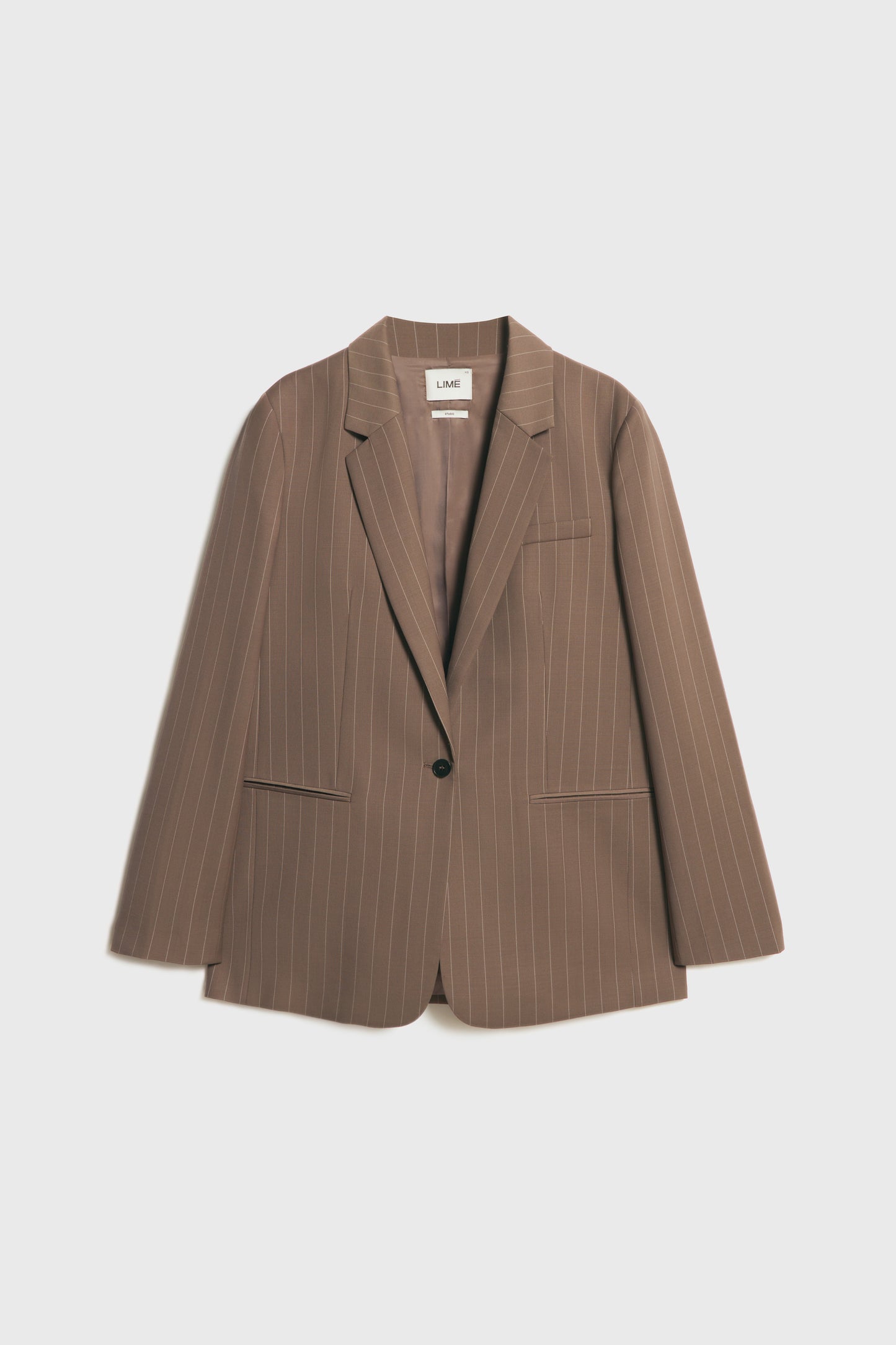 Single-breasted jacket in a wool blend weave. Features lapels, welt front pockets and inner shoulder pads. One button at the front. Lined.