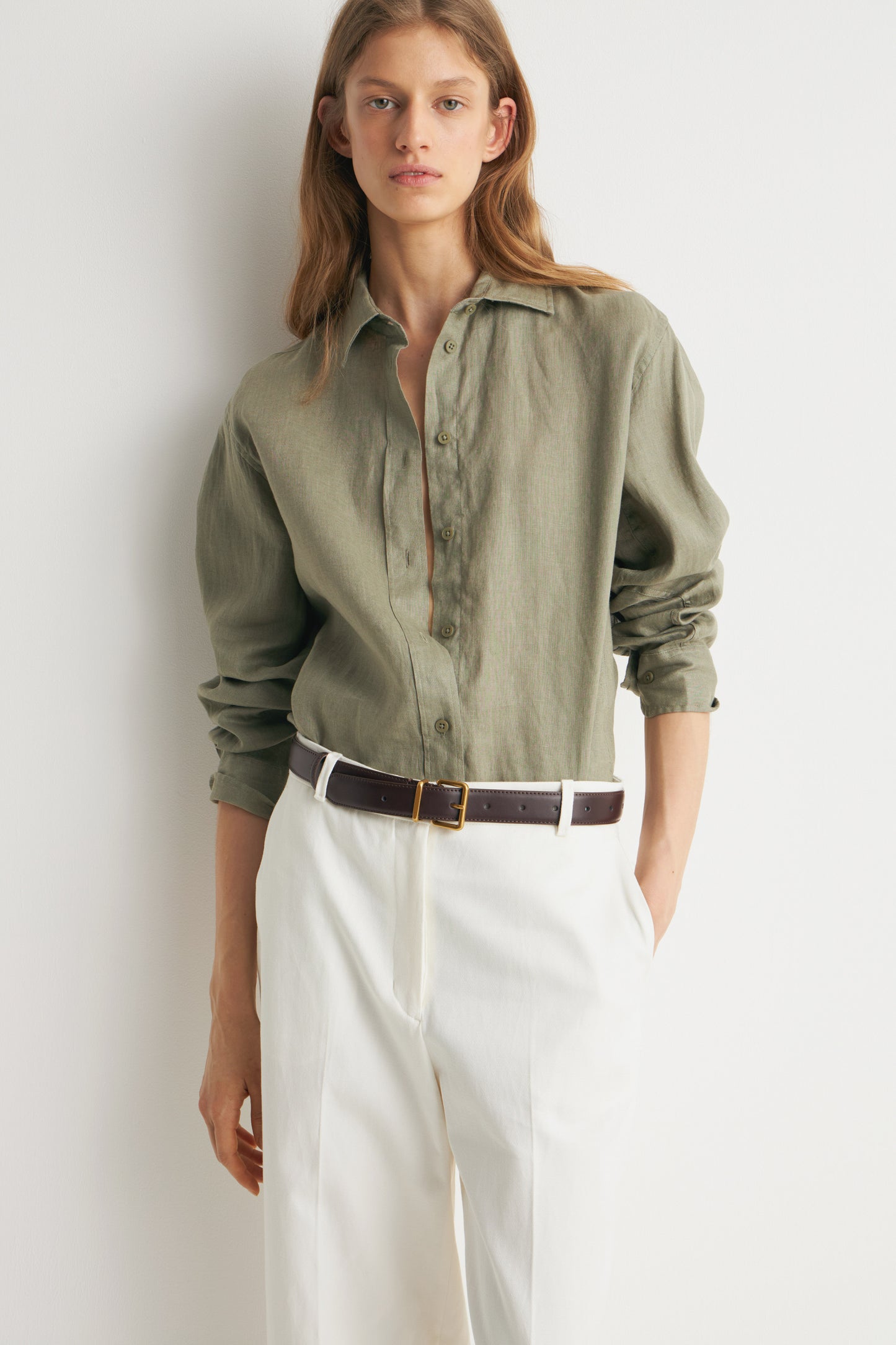 Slim-fit shirt in an airy linen weave with a collar, button front and long sleeves with adjustable buttoning at the cuffs.