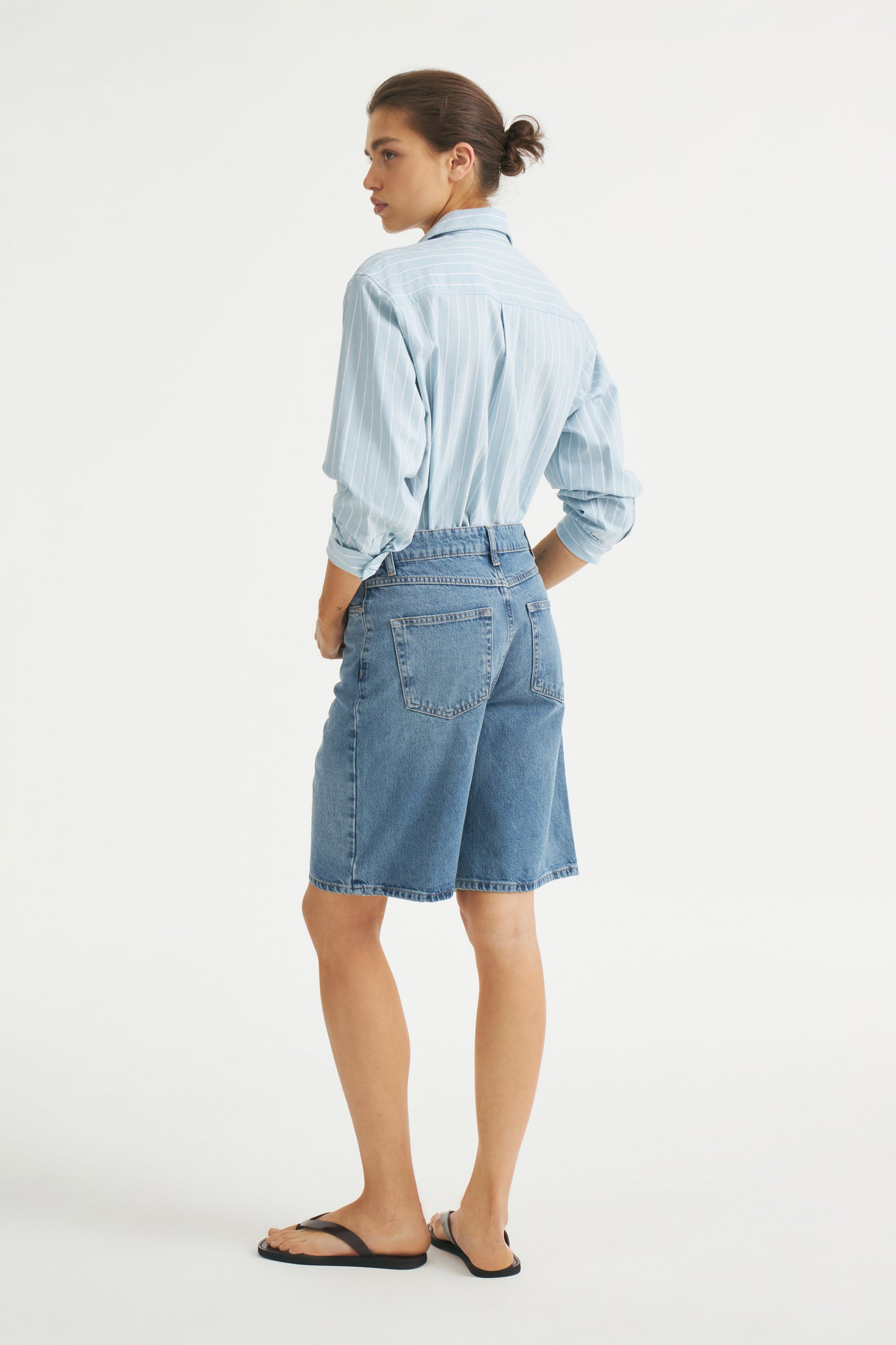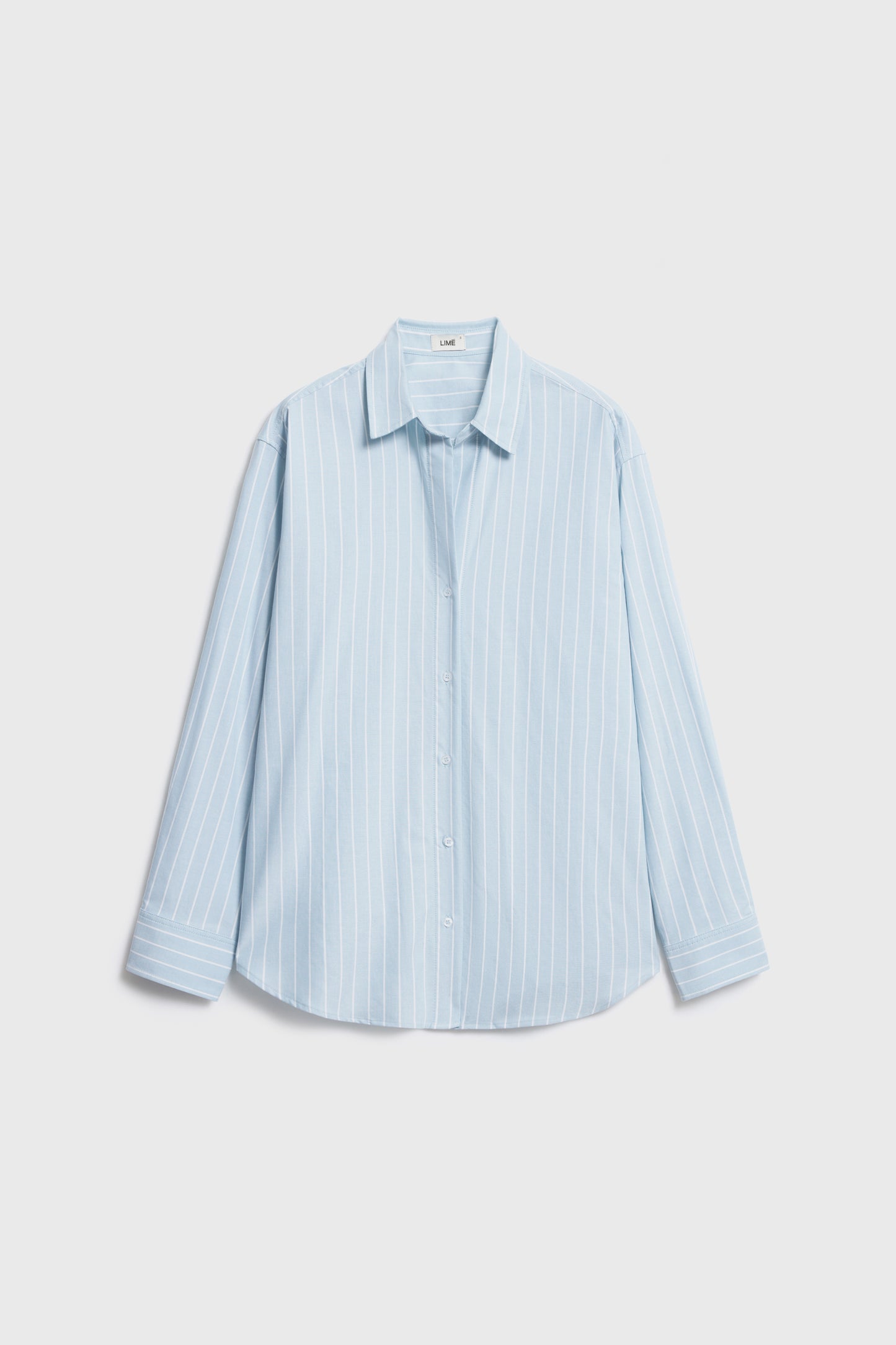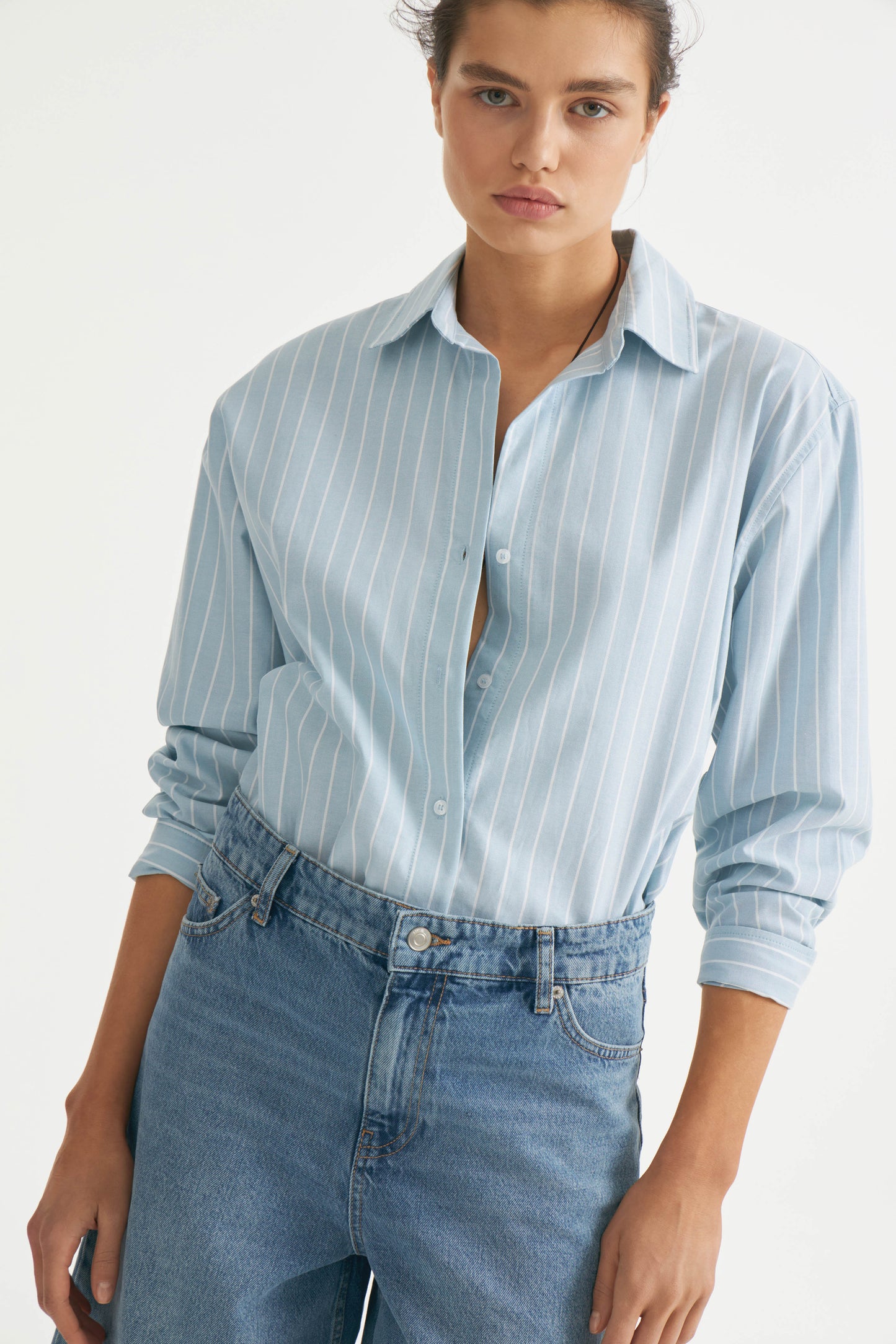 Straight-fit shirt with cuffed long sleeves in striped cotton. Featuring a collar and button-up front. Rounded hem.