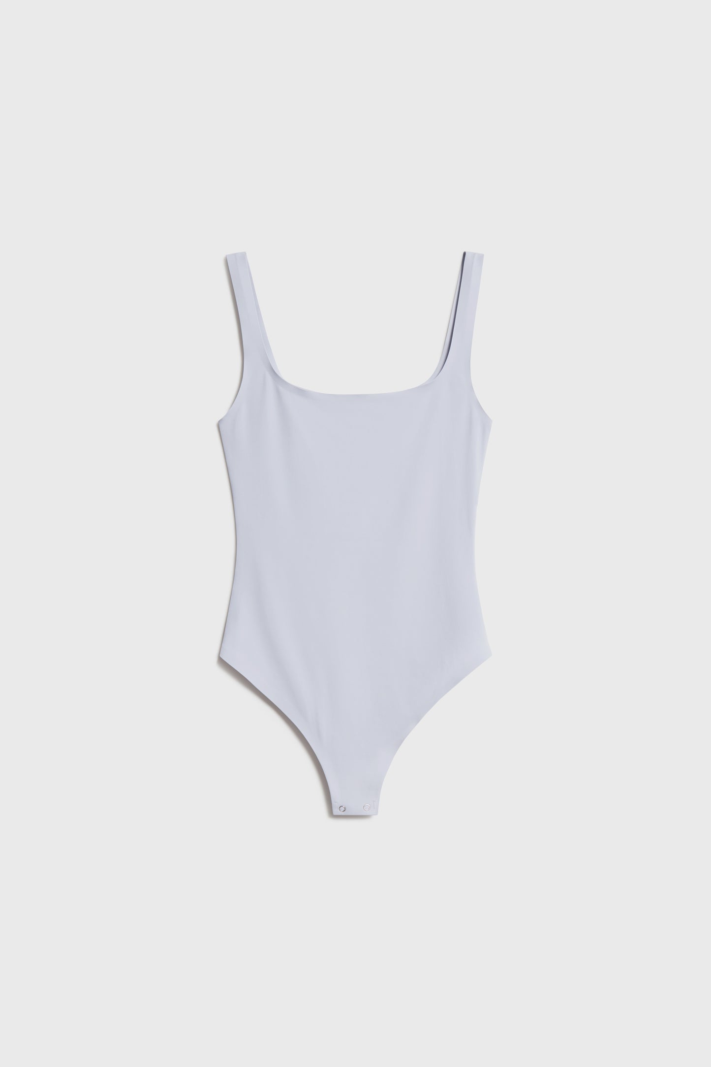 Bodysuit with a square neckline, wide straps and snap-button fastening at the bottom.