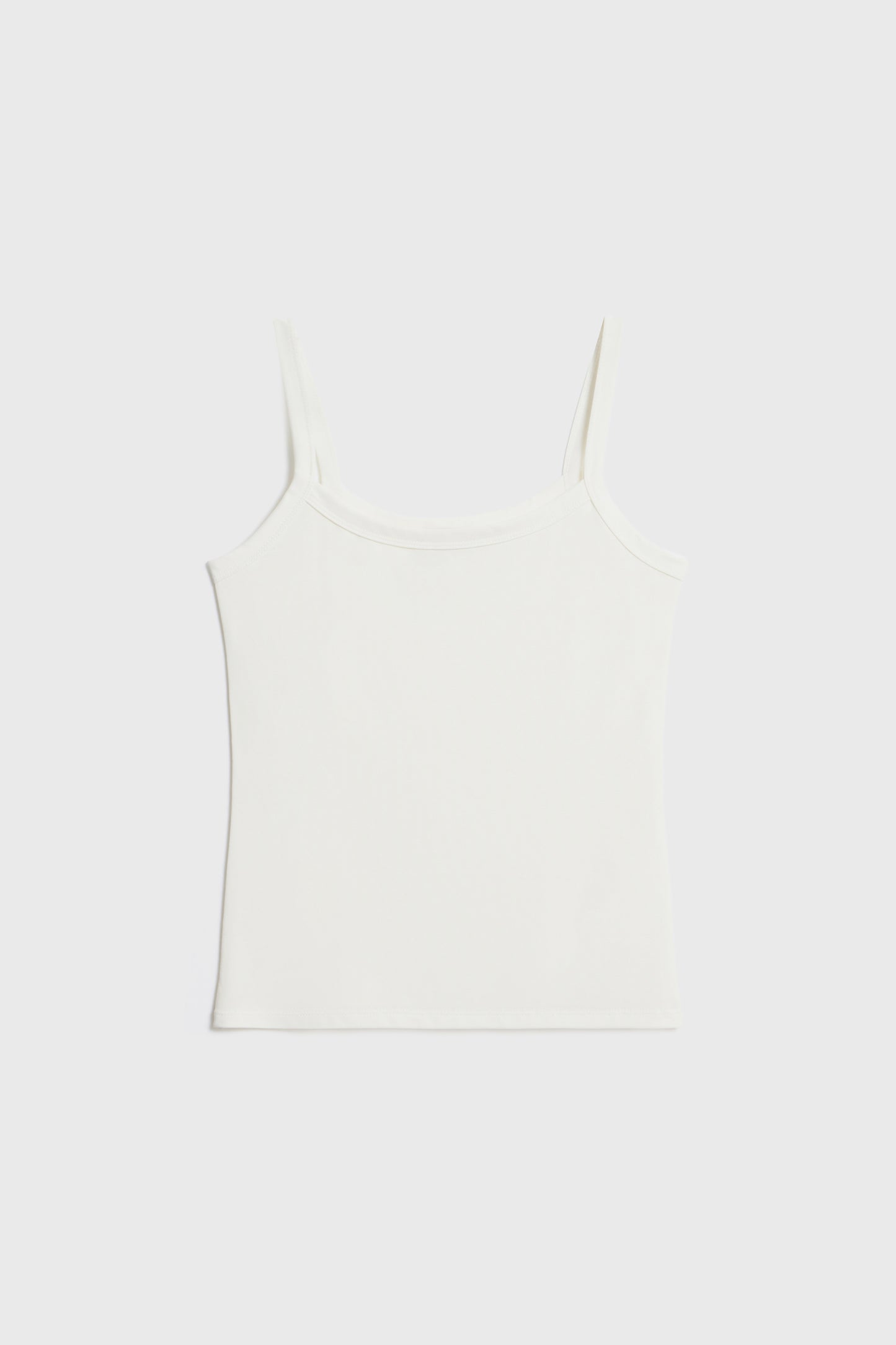 Top in soft, ribbed viscose jersey with straight neckline and narrow shoulder straps. Slim fit. Tonal trim.