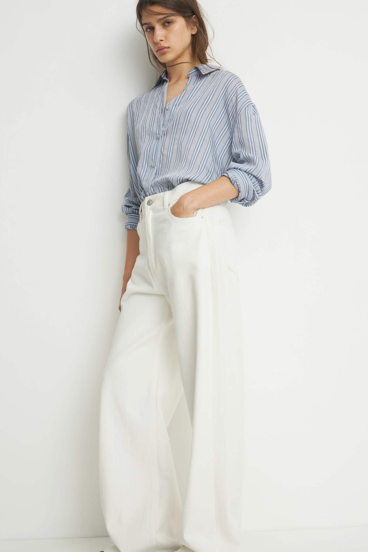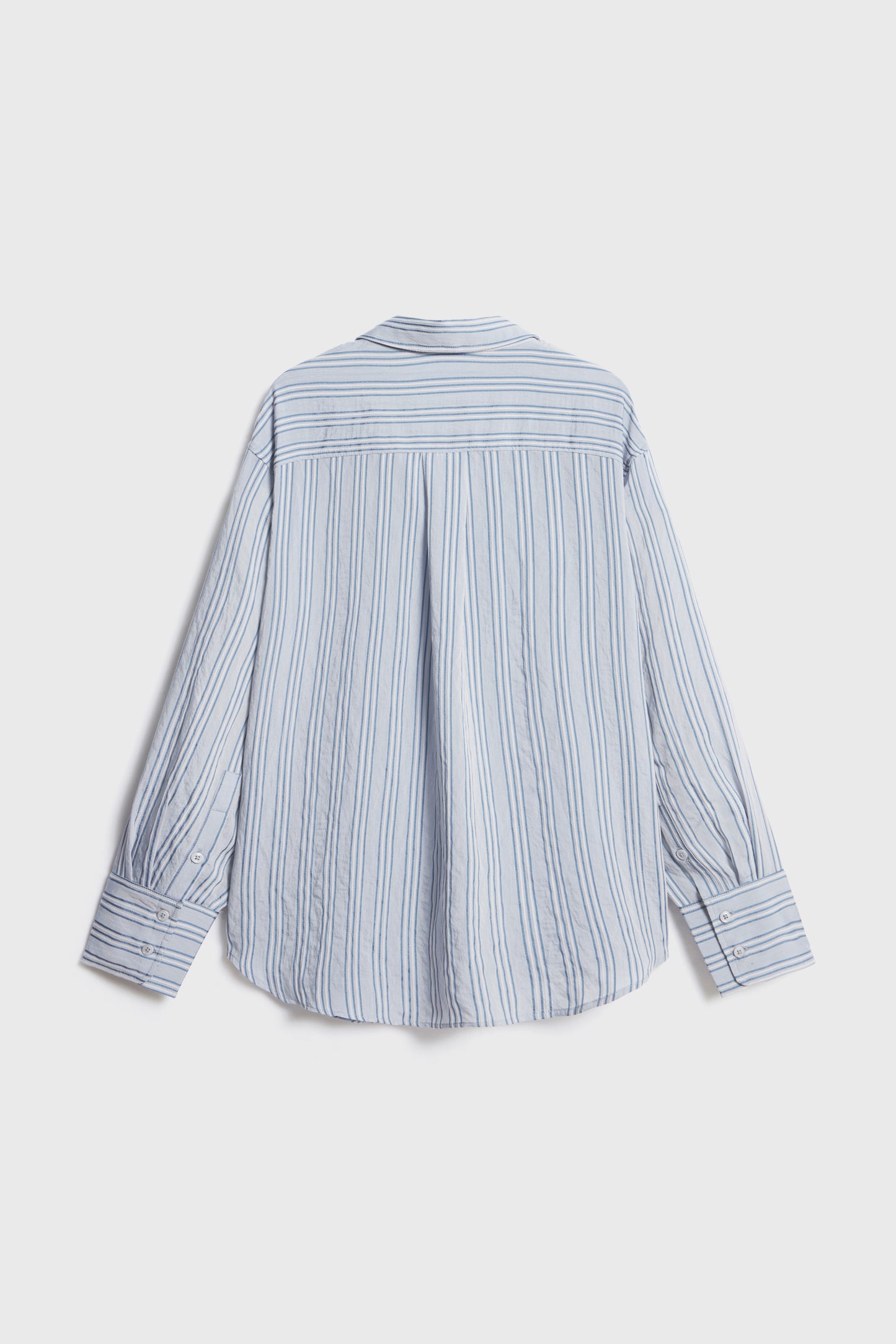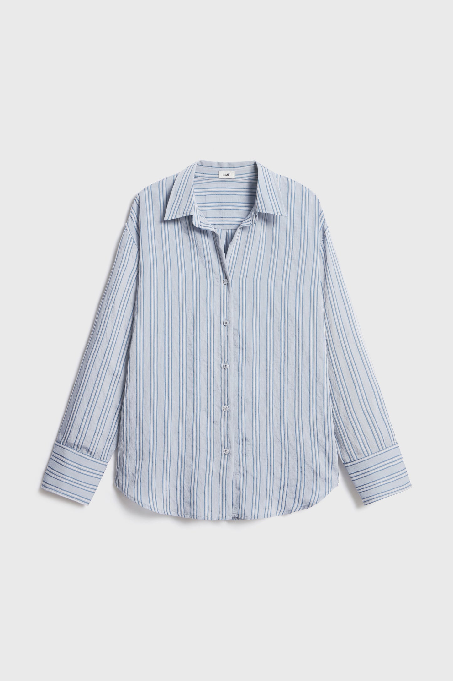 Straight-fit shirt in crinkled viscose and cotton weave with a V-shaped front, collar and buttons down the front. Long sleeves with buttoned cuffs.