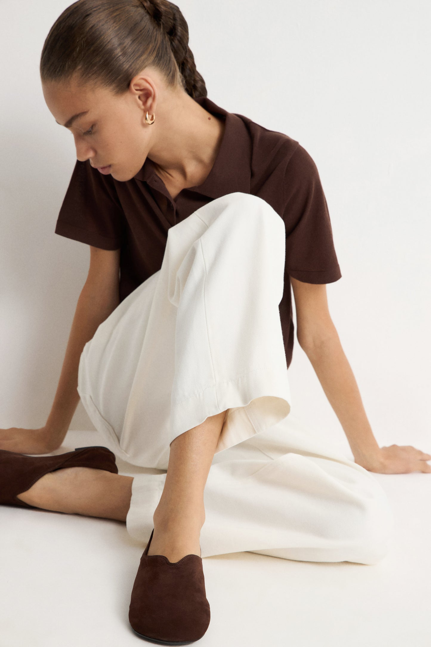 These suede loafers with slightly lower-cut top edge and round toes. Leather insoles. Your purchases are delivered with a fabric bag.