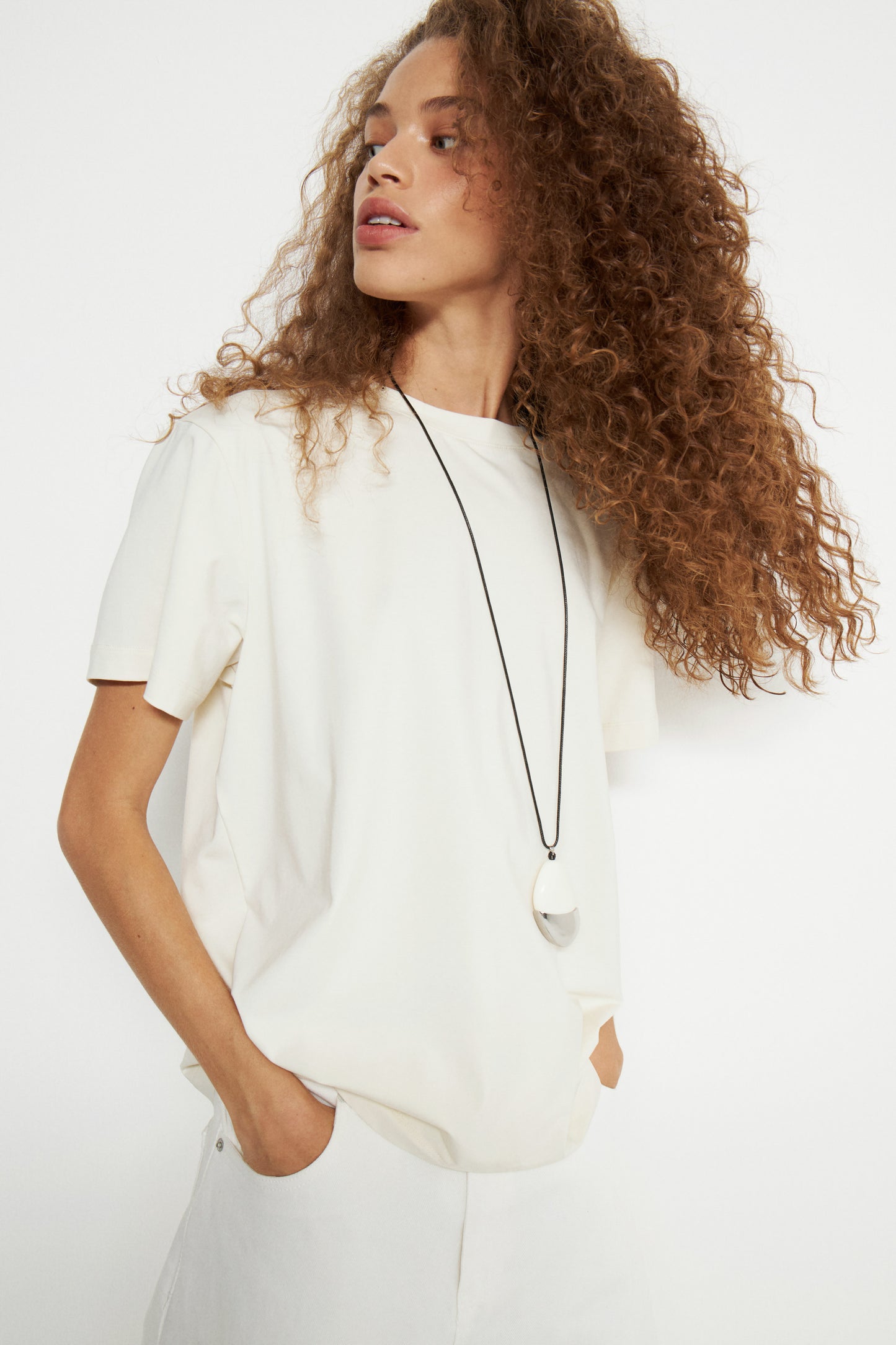 Regular fit T-shirt in a viscose and cotton blend jersey. Featuring a round neck and short sleeves.
