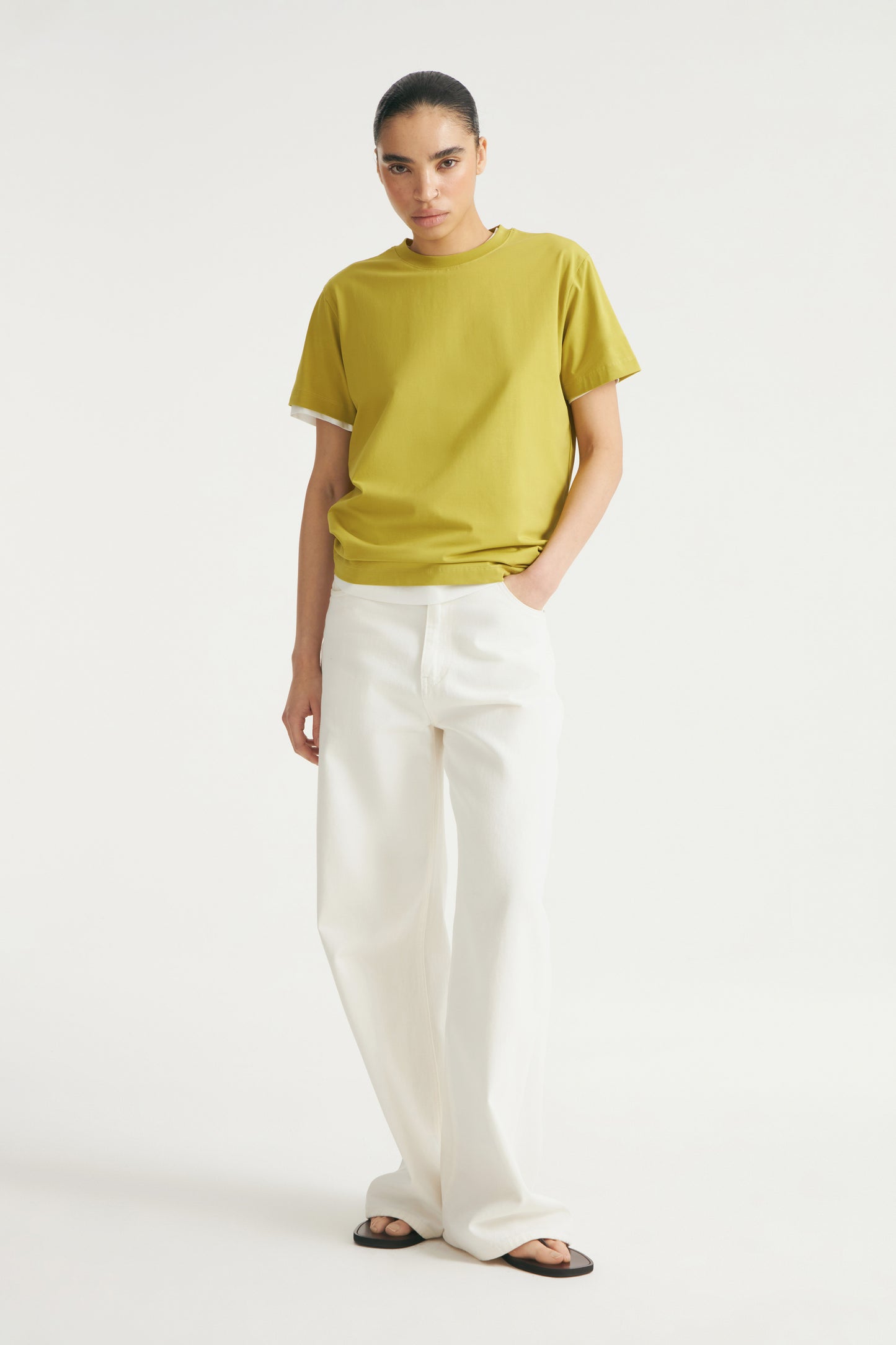 Regular fit T-shirt in a viscose and cotton blend jersey. Featuring a round neck and short sleeves.