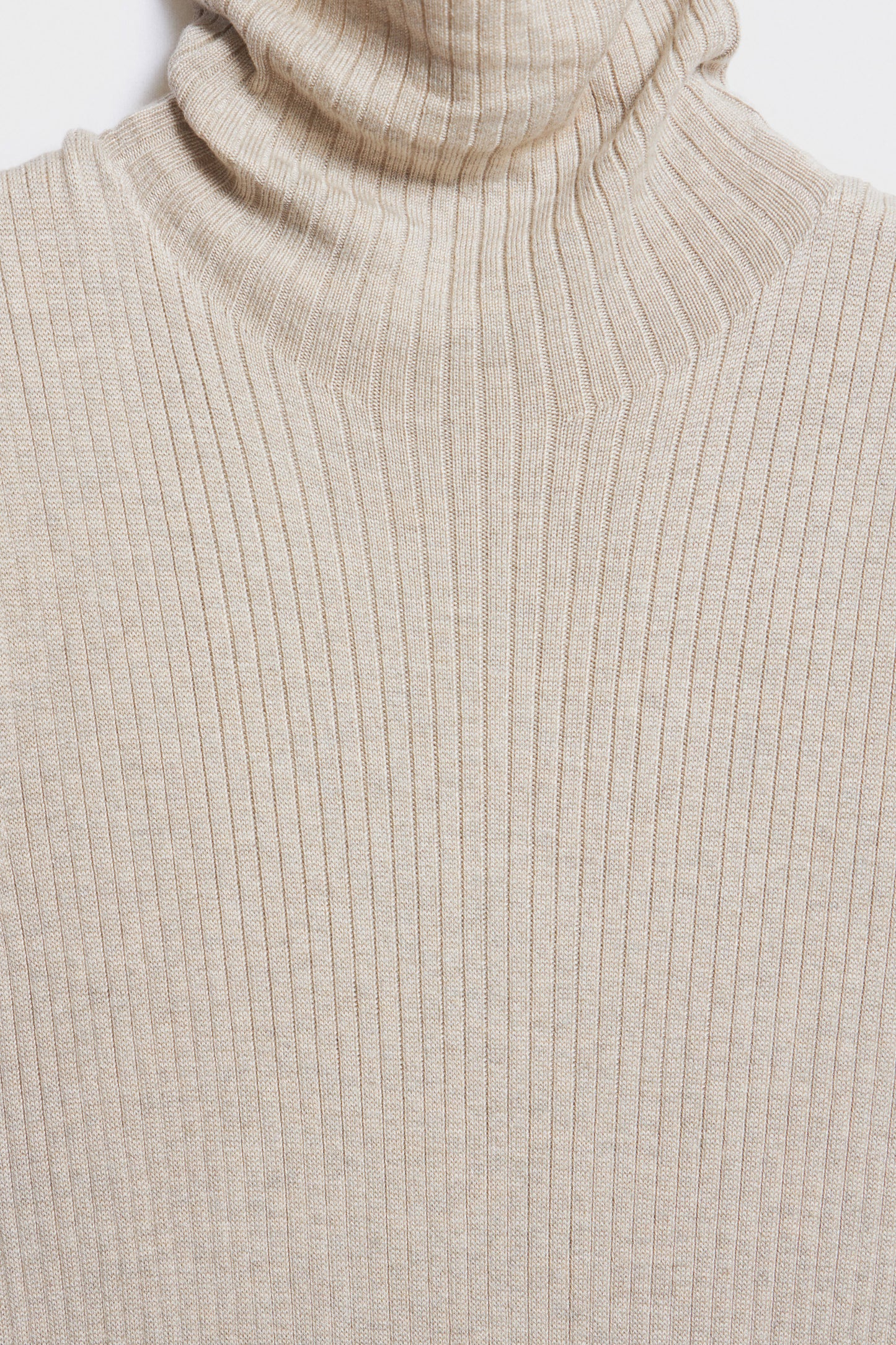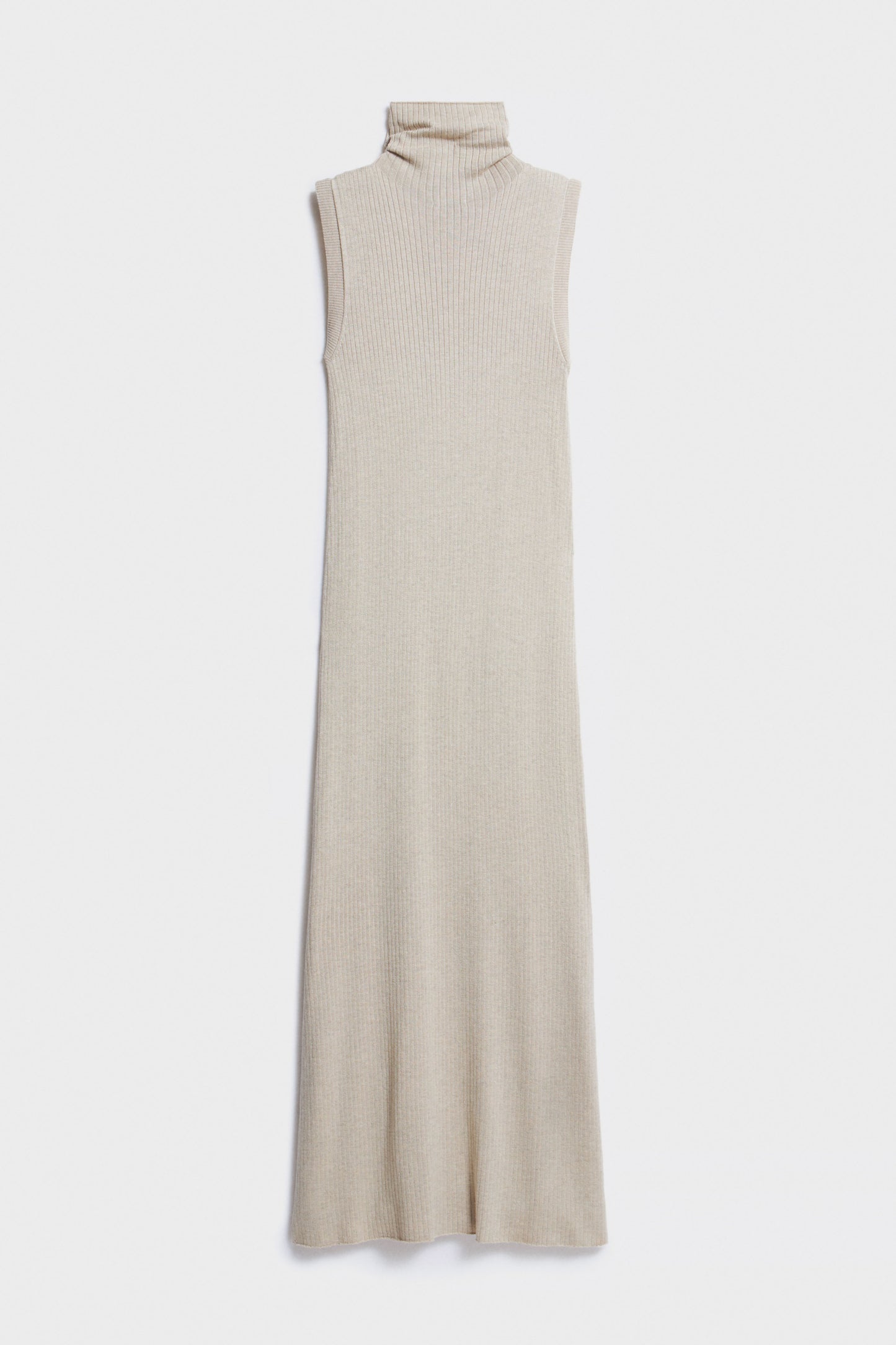 Fitted, maxi-length dress in a soft knit viscose. Mock turtleneck and a straight-cut hem with slits at side.