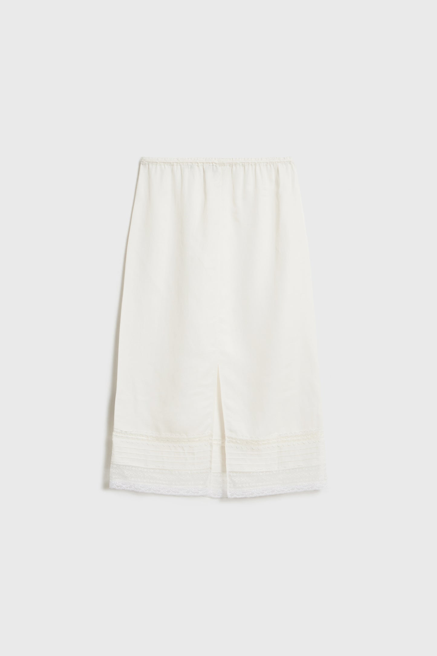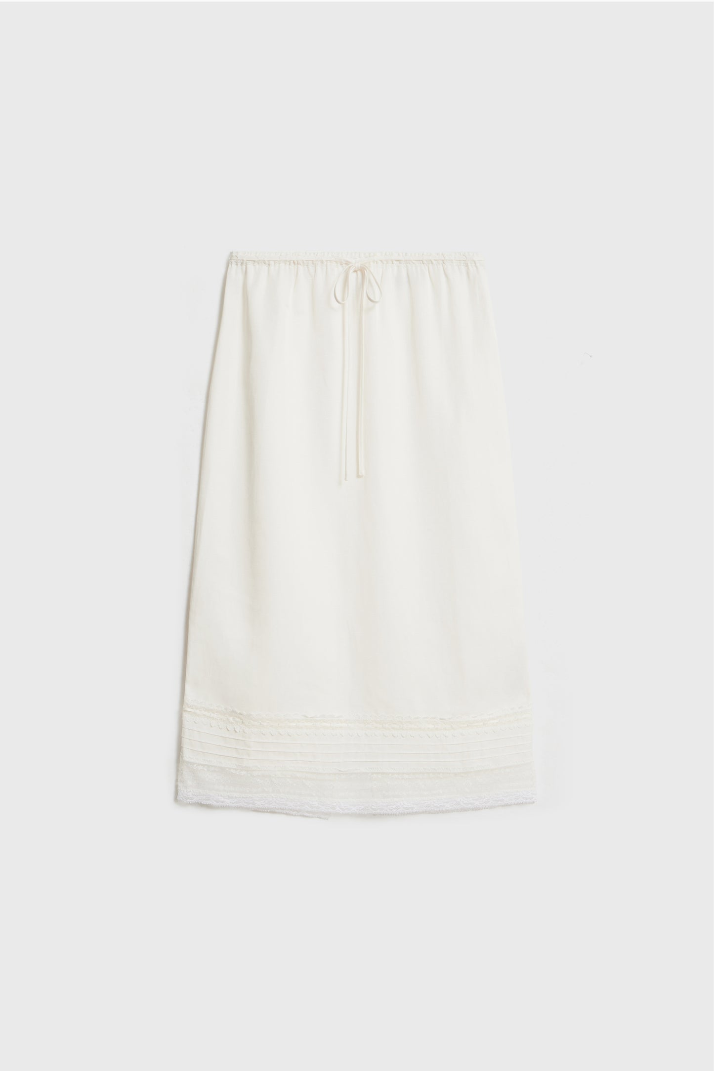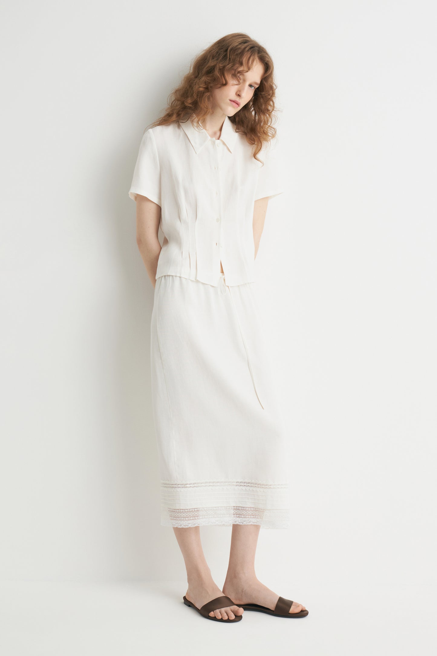 Midi skirt in an airy viscose and linen weave with a lace trim. Featuring an elasticated, drawstring waist.