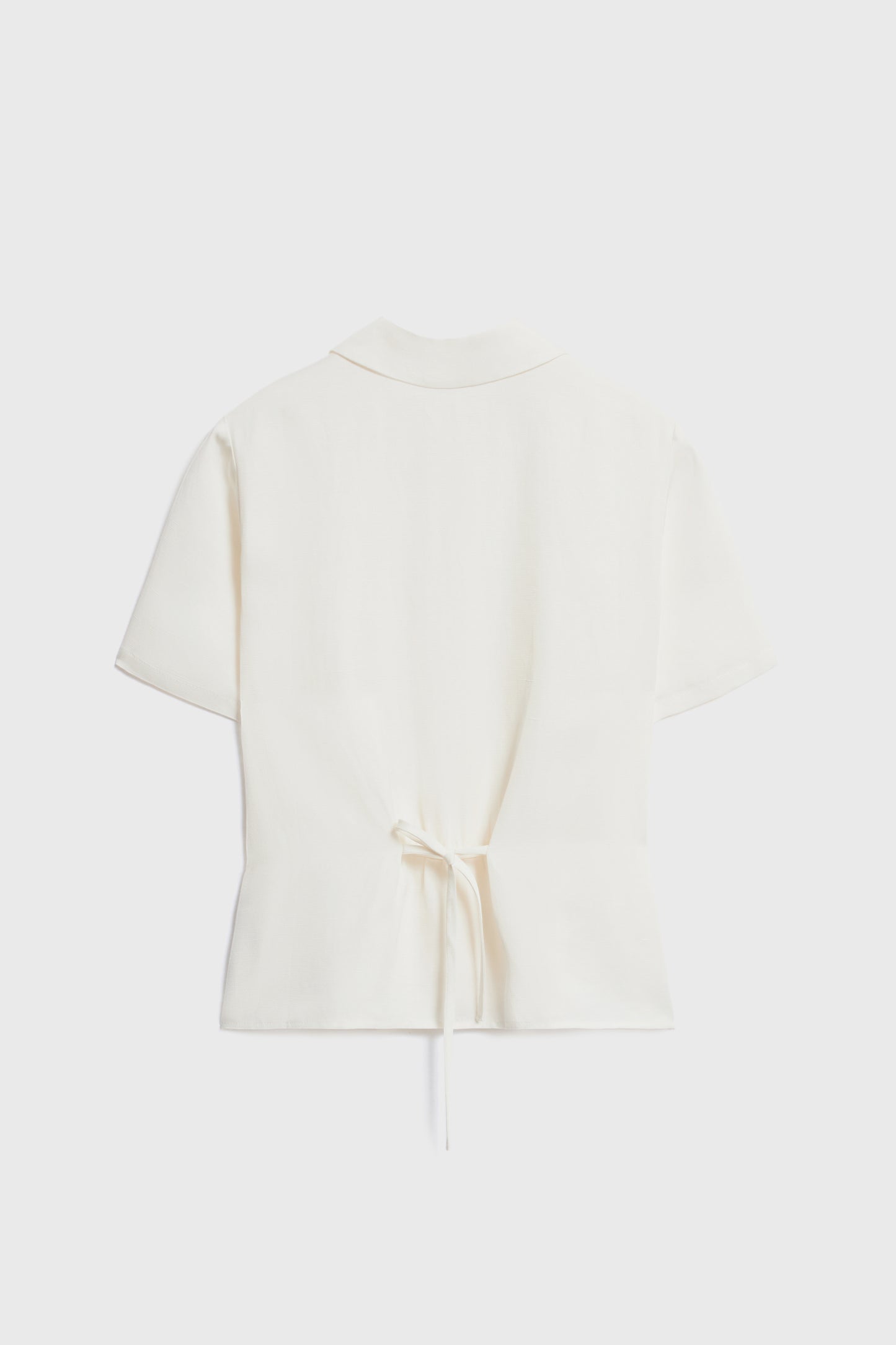 Shirt in an airy viscose and linen weave with a collar and buttons down the front. Slim fit with front box pleats, ties at the back and short-length sleeves. Pleated hem on the front.