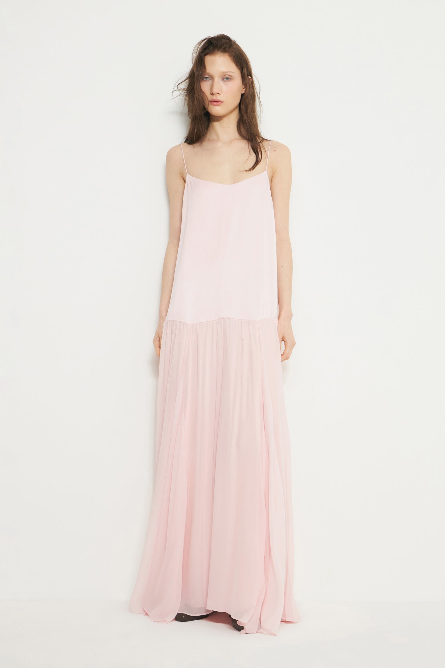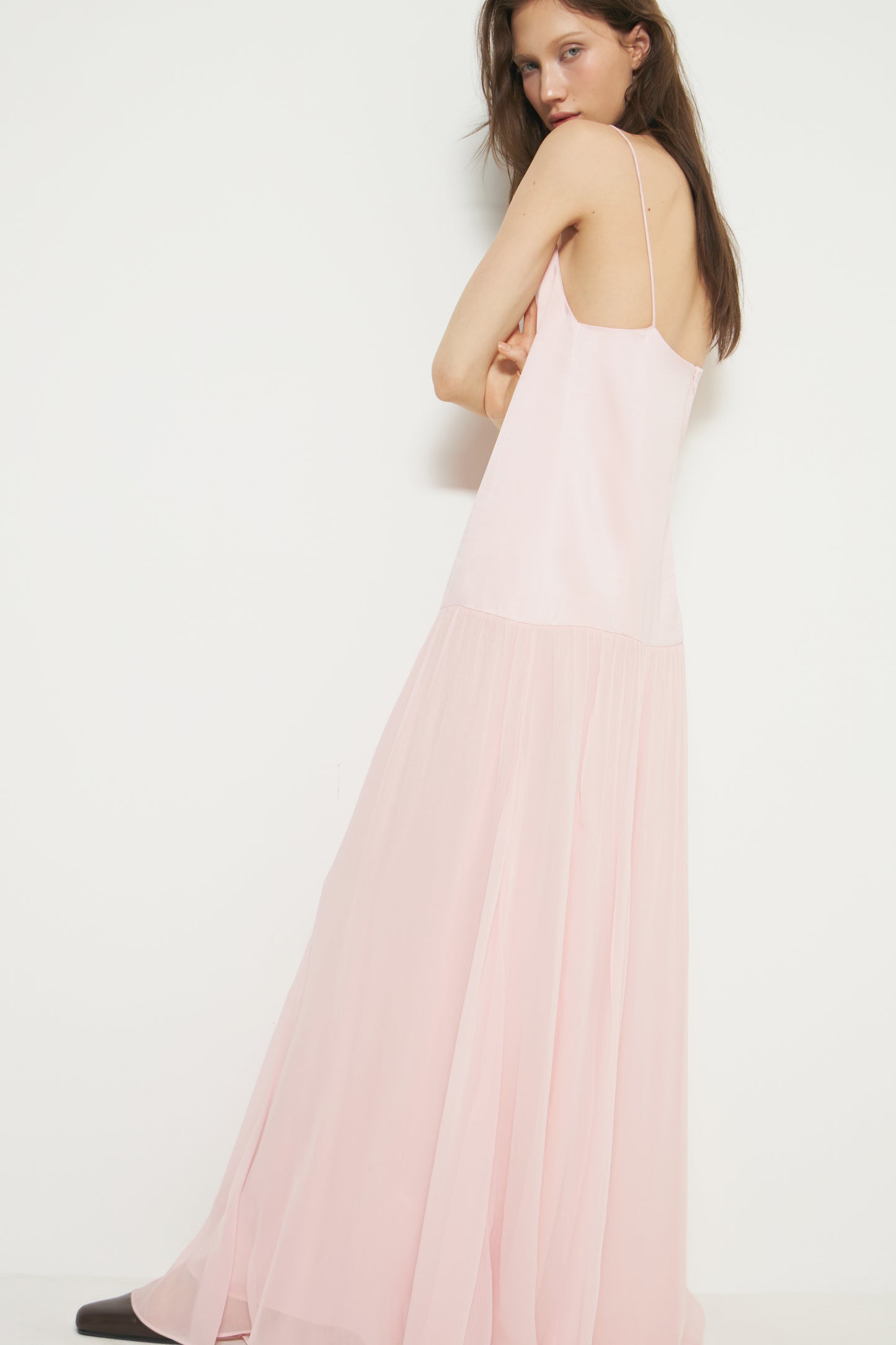Ankle-length dress in viscose with a tulle skirt. Designed with a deep, V-shaped neckline and spaghetti shoulder straps. Lined. A concealed zip at the back.
