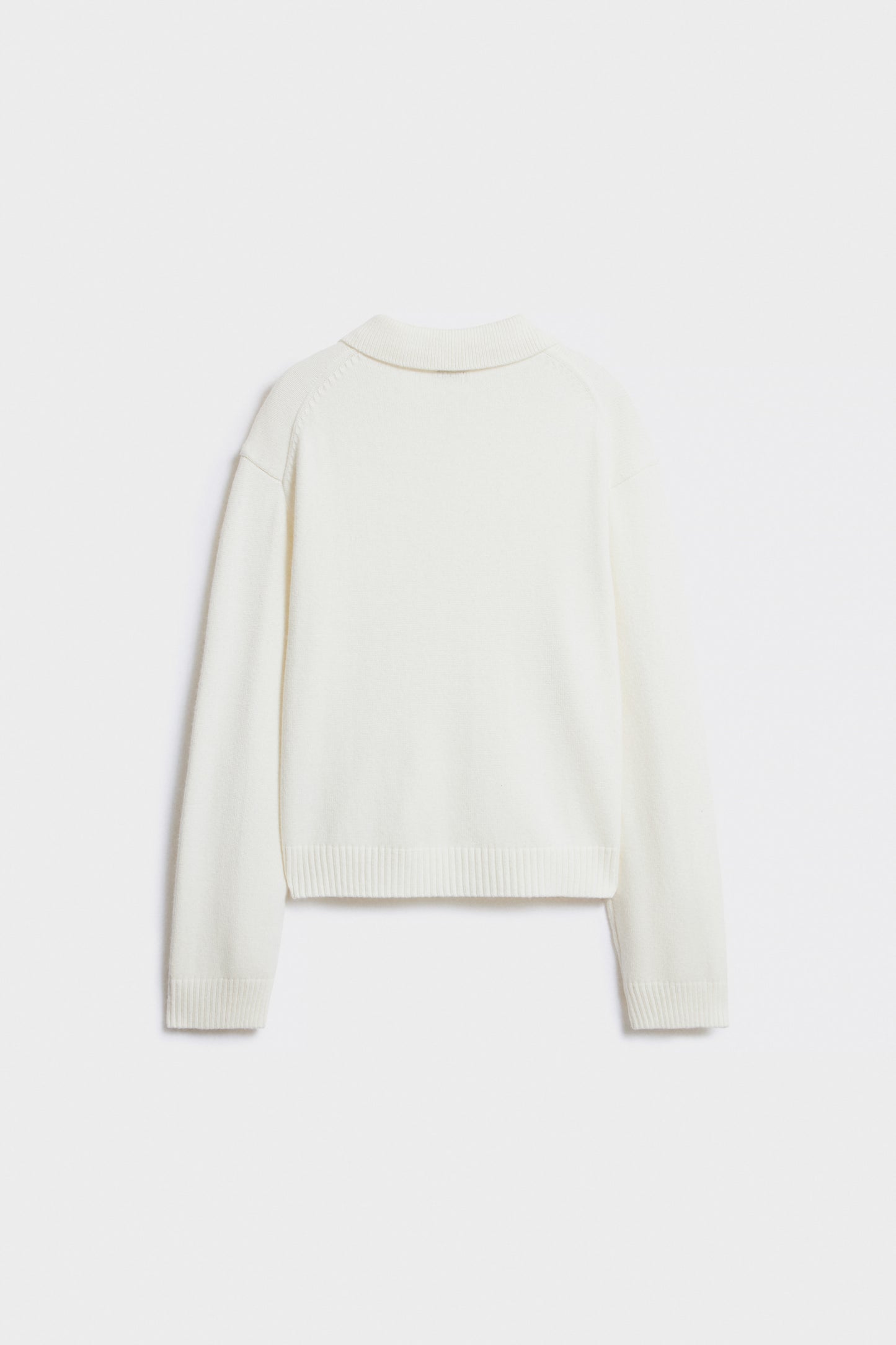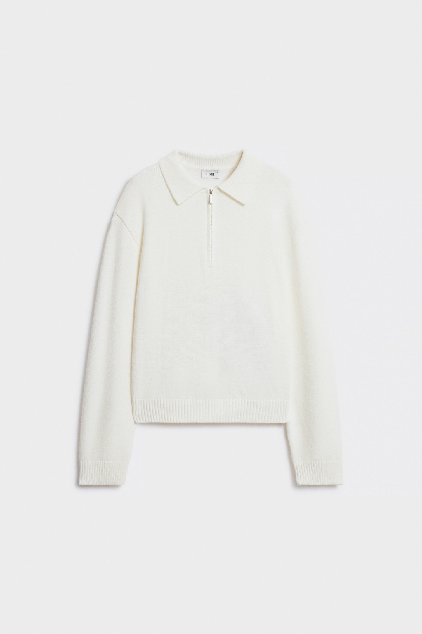 Oversized sweater crafted from a knitted viscose containing some angora wool. Featuring a high collar, long sleeves and a zip at the top. Ribbed trims.