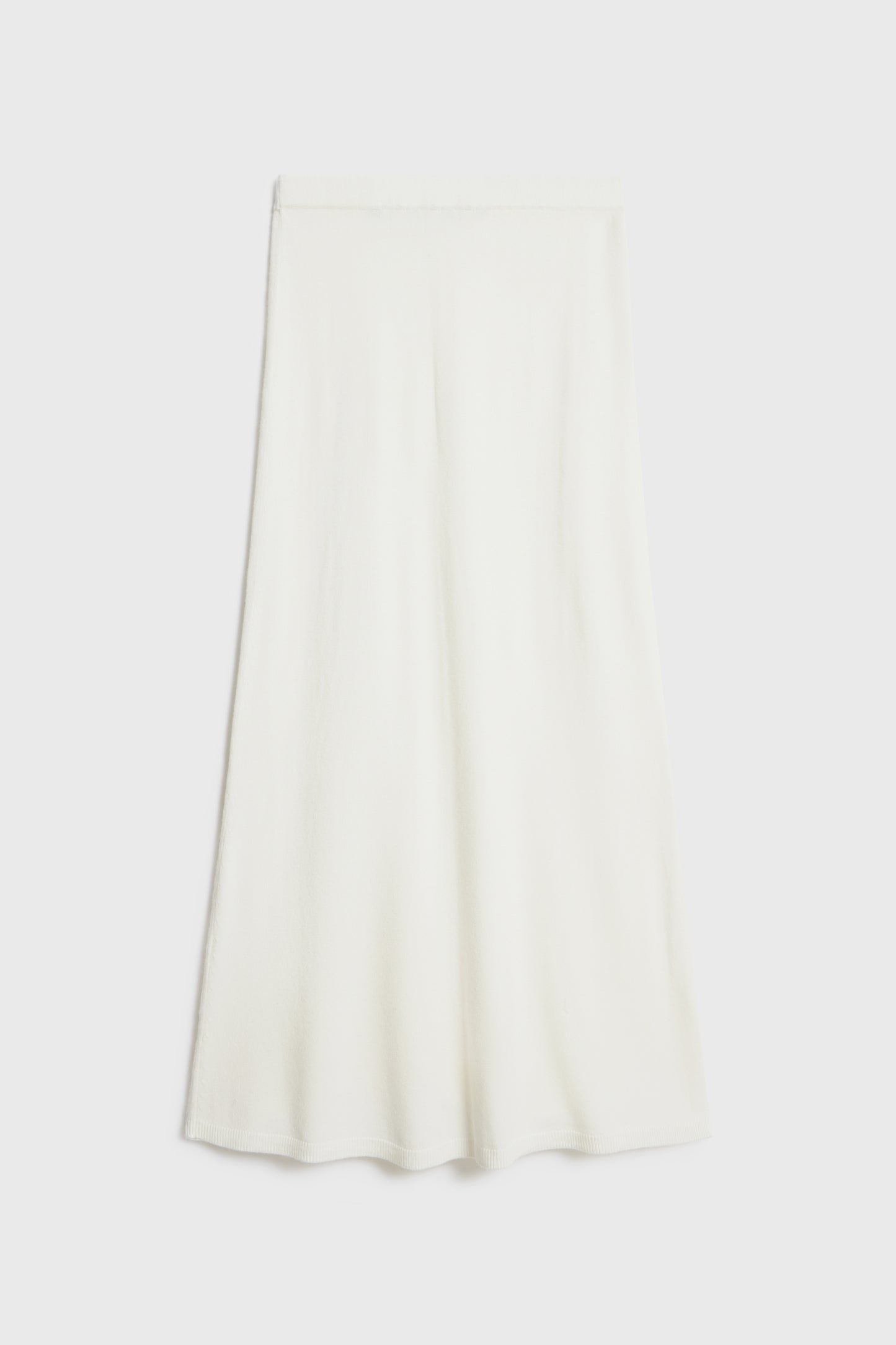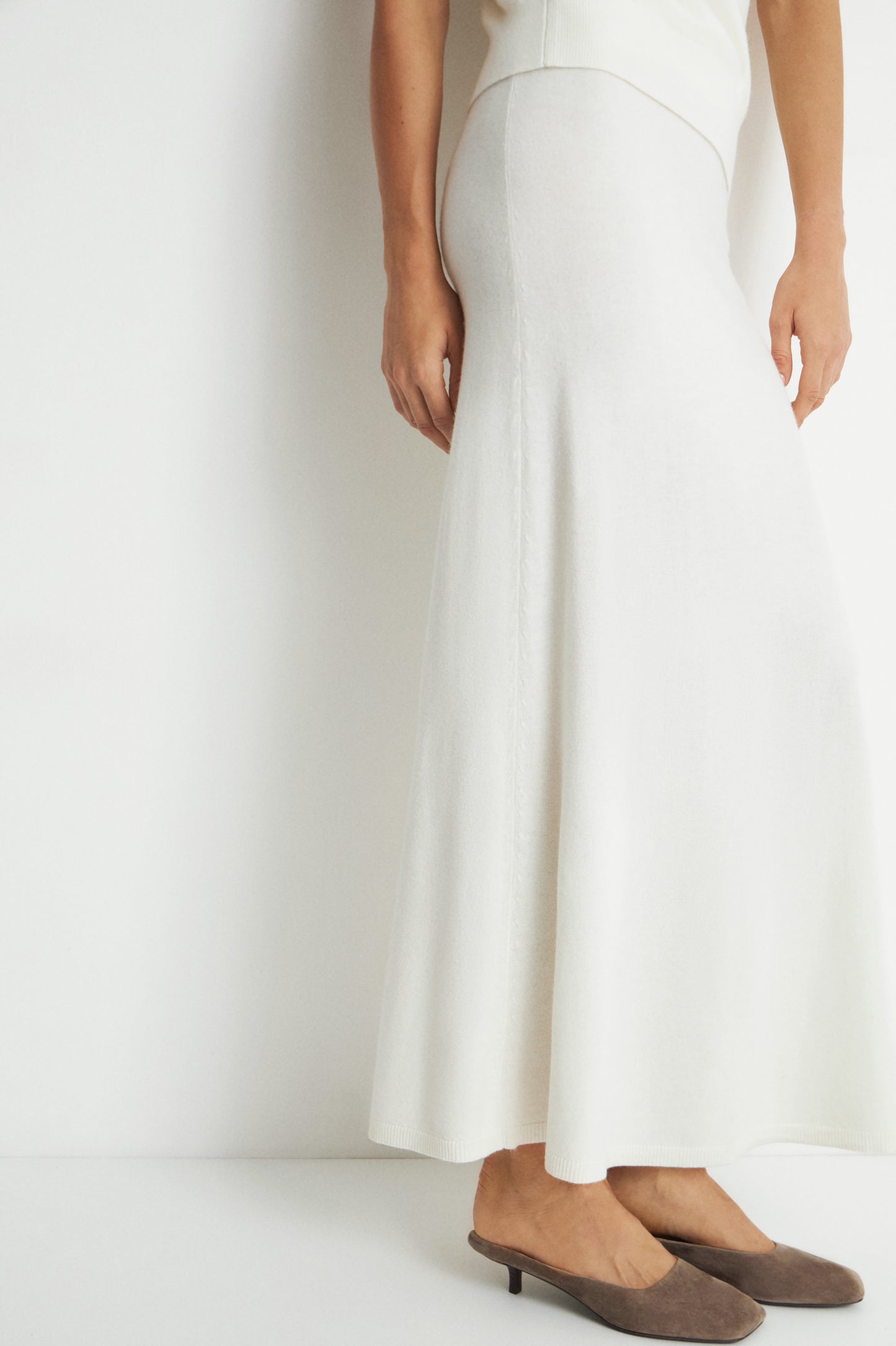 Knitted skirt made from a wool and cashmere blend. Features an elasticated waist and flared hem.